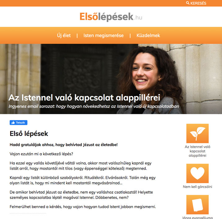 Létrehoztunk egy másik oldalt (elsolepesek.hu), hogy segítsünk neked növekedni az Istennel való kapcsolatodban.